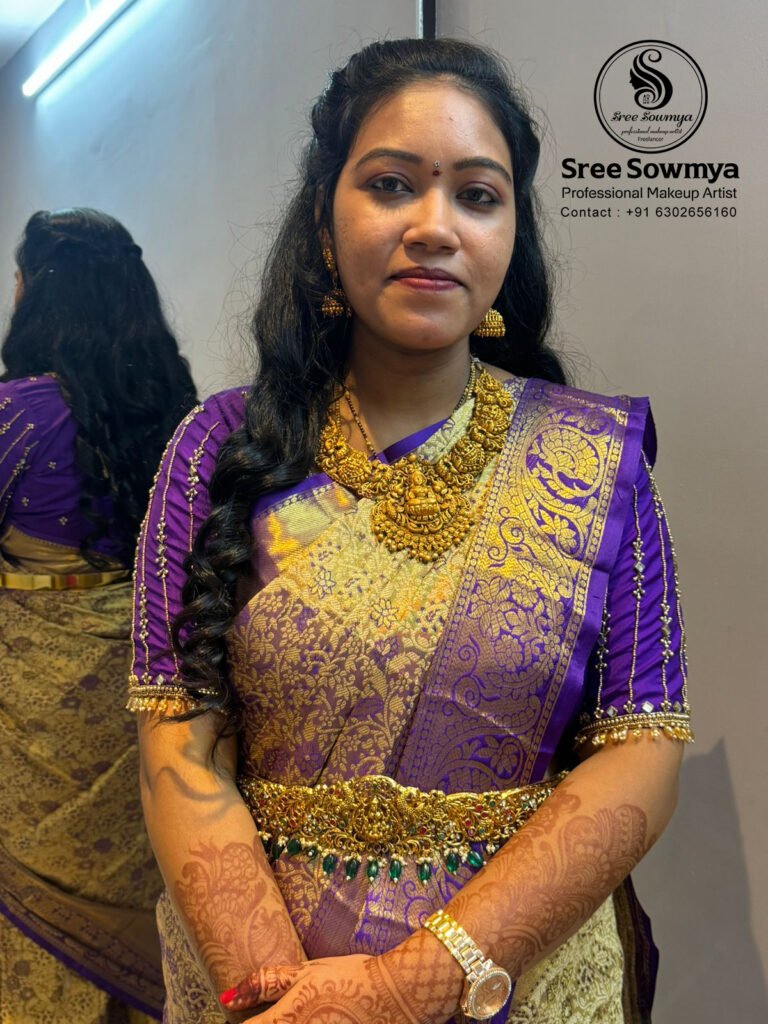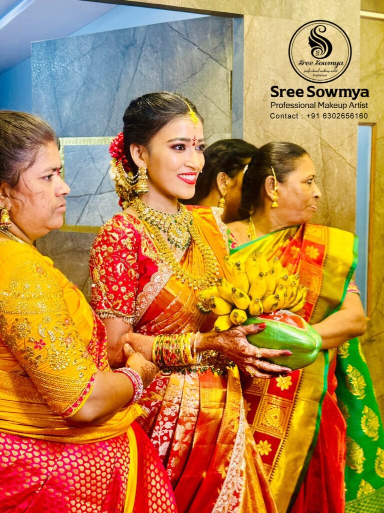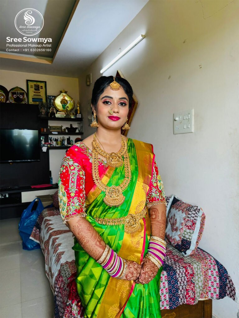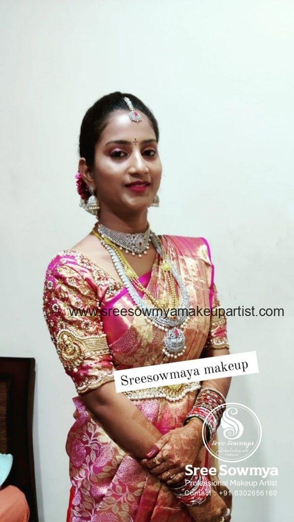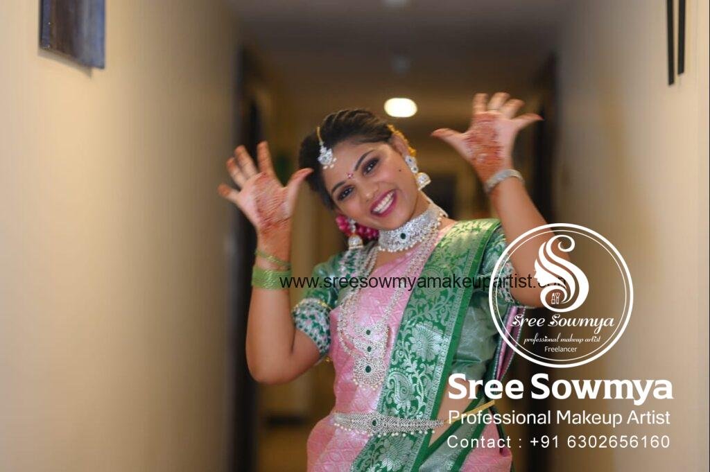 Sree Sowmaya is one of the Bridal Women Beauty Makeup artist in Vishakhapatnam established by in 2014. She is a professional HD Makeup and Bridal Makeup Artist and shows expertise in all of her work. To reach more customers we are extending our exclusive services in big cities like Vijayawada, Guntur, Eluru, Vizayanagram, Rajahmundry,You can search for the best beauty Makeup near me to find the one that is closest to your location. At Sree Sowmaya Makeup in Vishakhapatnam we provide in house bridal makeup and hair services. Bridal makeup services and all beauty techniques are exceptional and incomparable. We at our Best Beauty parlour in vizag understand that your big day is a special memory that will be with you for the rest of your life – which is why we want to ensure you look and feel beautiful on your big day!