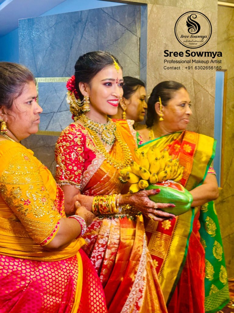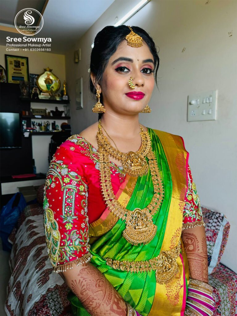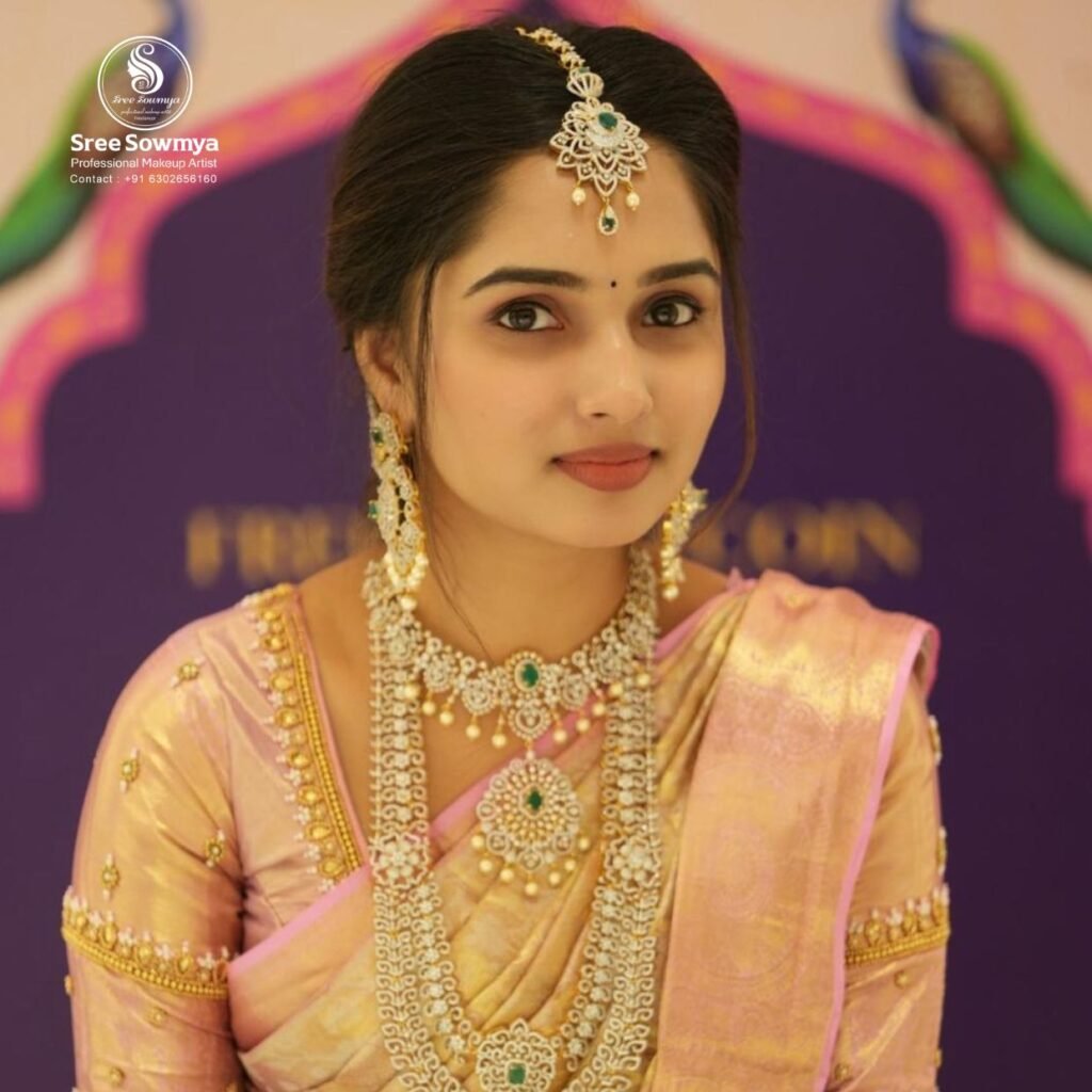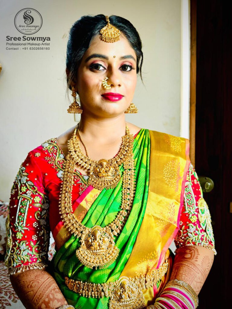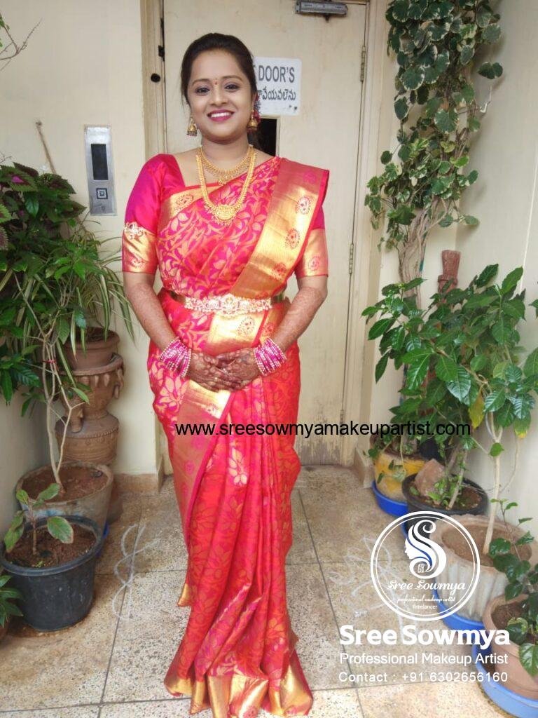 Sree Sowmaya is one of the Bridal Women Beauty Makeup artist in Vishakhapatnam established by in 2014. She is a professional HD Makeup and Bridal Makeup Artist and shows expertise in all of her work. To reach more customers we are extending our exclusive services in big cities like Vijayawada, Guntur, Eluru, Vizayanagram, Rajahmundry,You can search for the best beauty Makeup near me to find the one that is closest to your location. At Sree Sowmaya Makeup in Vishakhapatnam we provide in house bridal makeup and hair services. Bridal makeup services and all beauty techniques are exceptional and incomparable. We at our Best Beauty parlour in vizag understand that your big day is a special memory that will be with you for the rest of your life – which is why we want to ensure you look and feel beautiful on your big day!