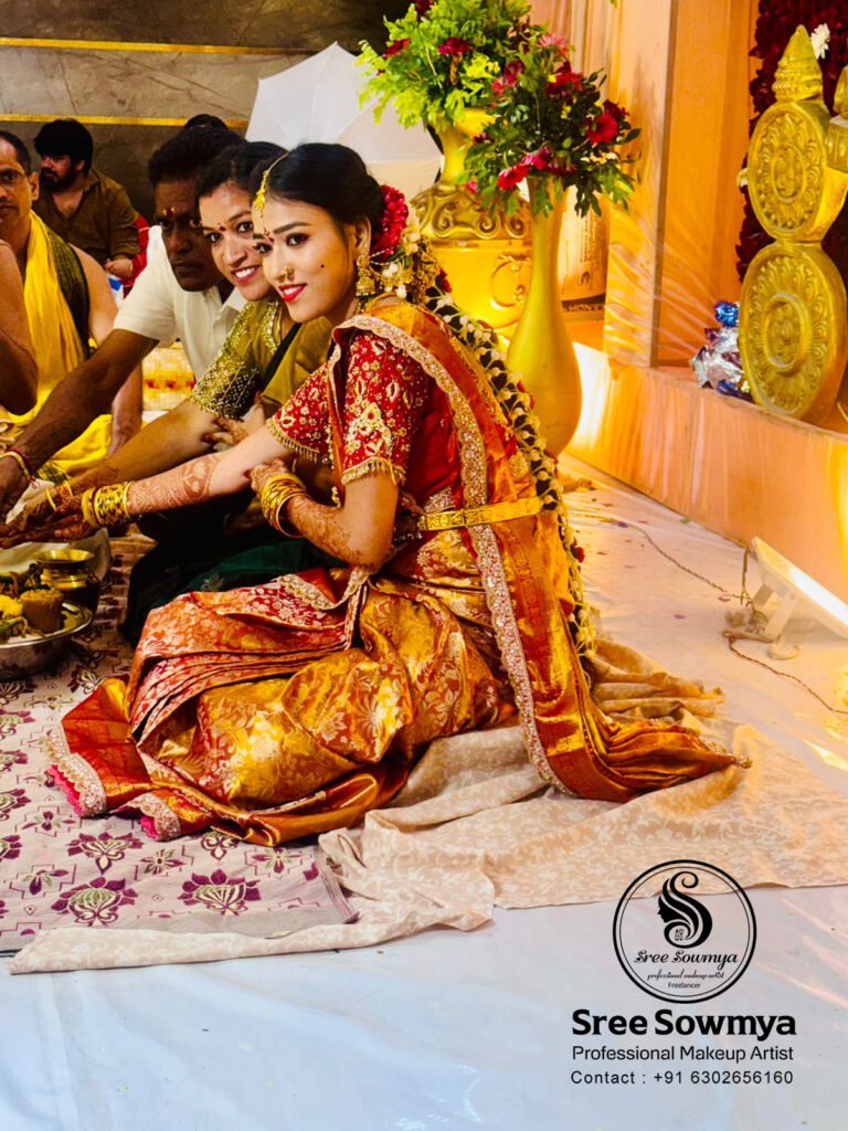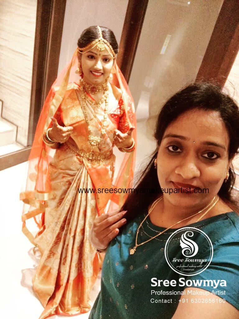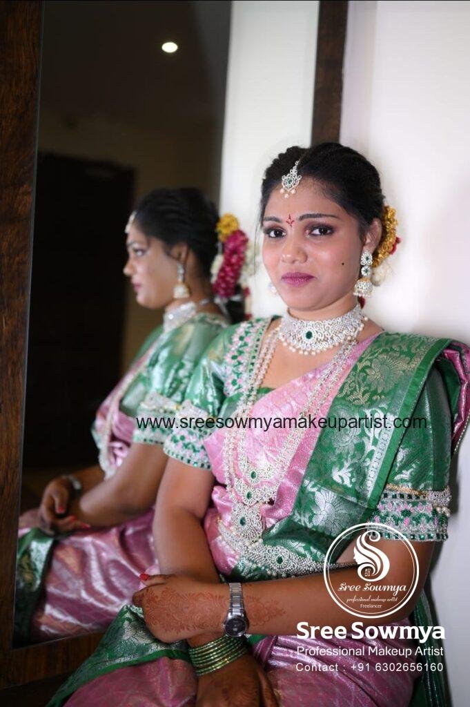 It was the best choice choosing sree Sowmya makeup....We really satisfied with the quality of the work she did..also she is using the best products...