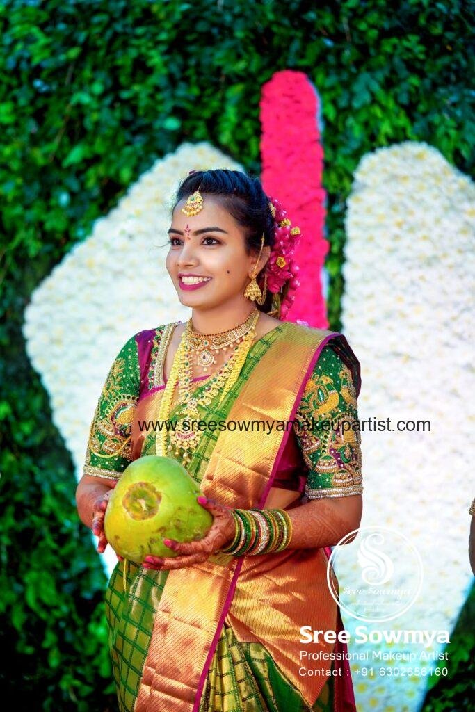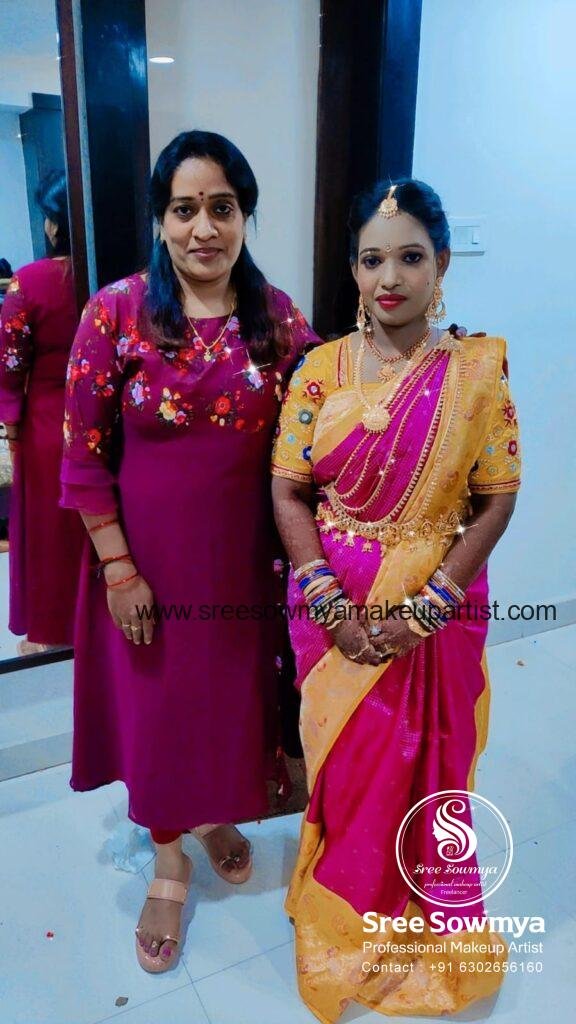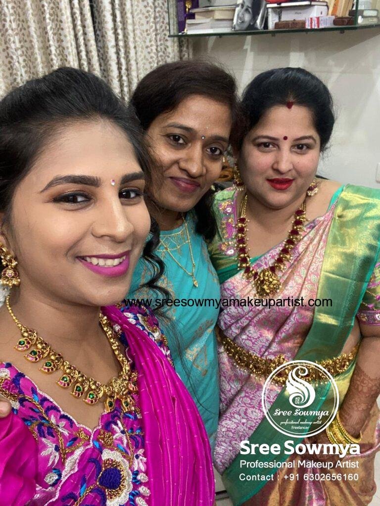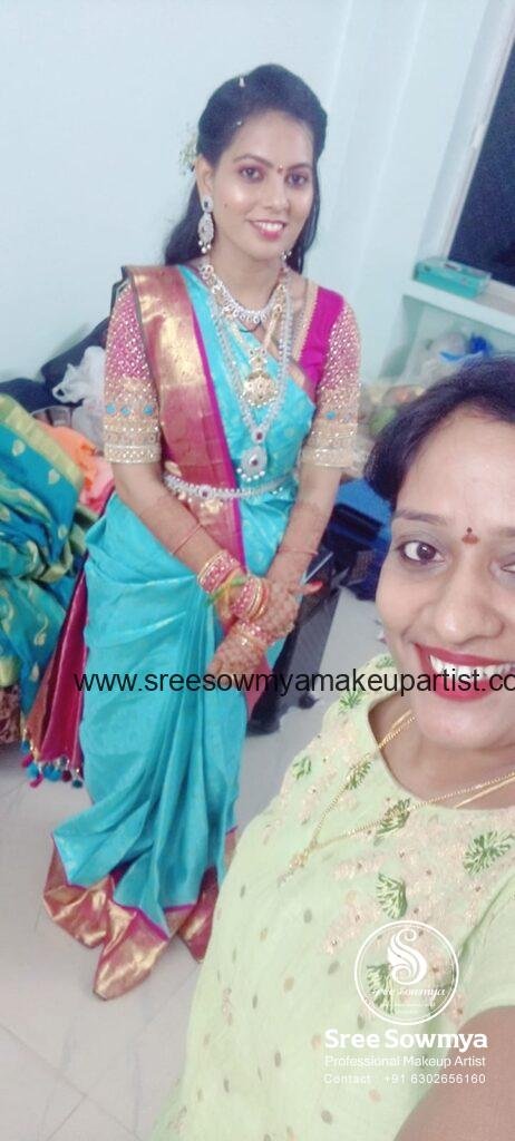Sree Sowmaya is one of the Bridal Women Beauty Makeup artist in Vishakhapatnam established by in 2014. She is a professional HD Makeup and Bridal Makeup Artist and shows expertise in all of her work. To reach more customers we are extending our exclusive services in big cities like Vijayawada, Guntur, Eluru, Vizayanagram, Rajahmundry,You can search for the best beauty Makeup near me to find the one that is closest to your location. At Sree Sowmaya Makeup in Vishakhapatnam we provide in house bridal makeup and hair services. Bridal makeup services and all beauty techniques are exceptional and incomparable. We at our Best Beauty parlour in vizag understand that your big day is a special memory that will be with you for the rest of your life – which is why we want to ensure you look and feel beautiful on your big day!